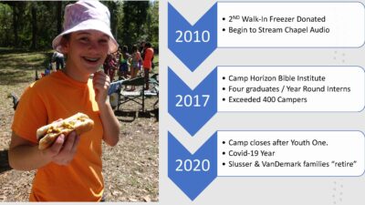 In the next decade there was an attempt to open a “gap” program for young people between high school and college. Camp Horizon Bible Institute graduated four students during that time, two of them serving as program interns.